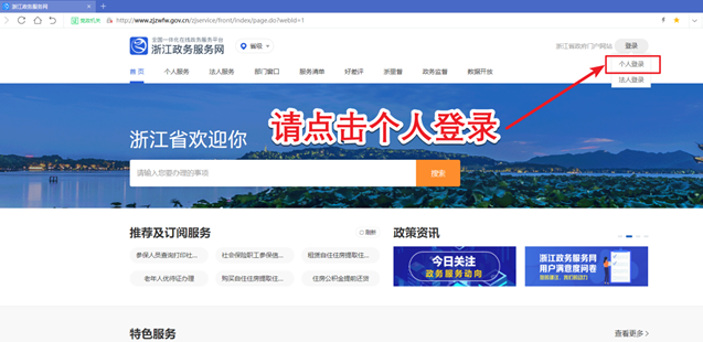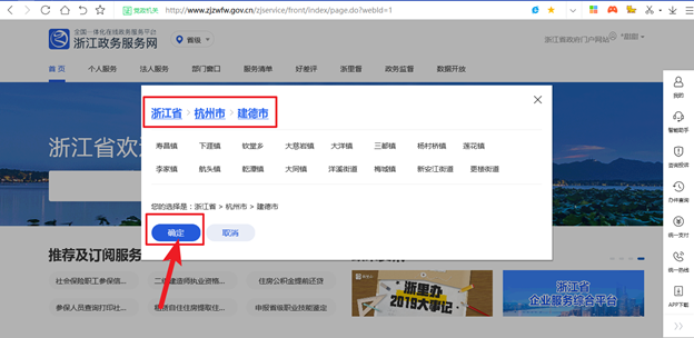 ②电脑网页:打开浏览器搜索“浙江政务服务网”或在地址栏输入http://www.zjzwfw.gov.cn/,进入浙江政务服务网网站,并将位置定位在“杭州市-建德市”后,在输入框内输入“幼儿园”,进行搜索,找到“建德市丨幼儿园儿童入园”,点击“在线办理”按钮进行报名(推荐使用360浏览器极速模式和谷歌浏览器)。