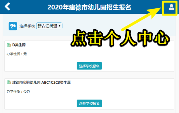 进入建德市的报名平台页面,查阅幼儿园入园网上报名流程后,点击页面上方“立即网上报名”按钮,根据入学条件选择进入对应的招生入口。