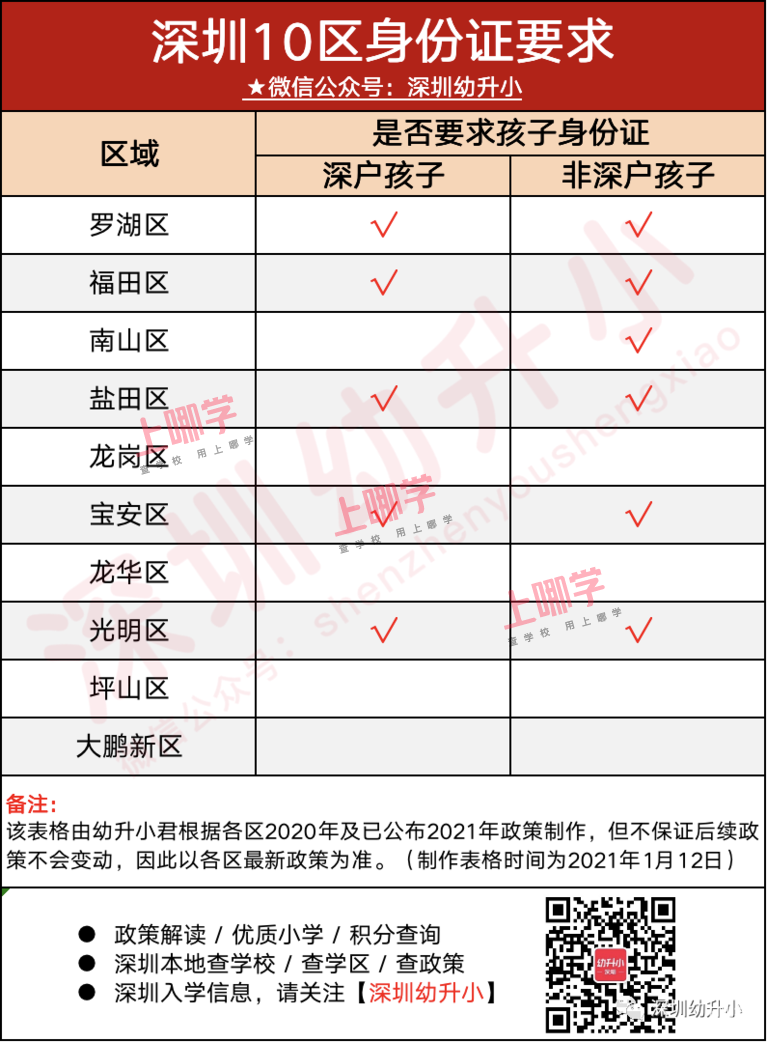 ★幼升小君解答:根据已公布的2021年入学提醒中,只有宝安区提到要求非深户、光明区深户/非深户需要提供身份证。并且光明区有说到因为疫情可以户口本代替,宝安区暂未提及。