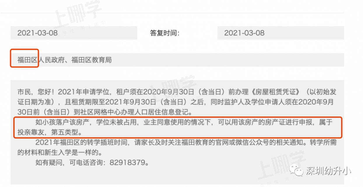 福田区有这样类似的表述,如果小孩落户该房产,学位未被占用,业主同意的情况下可以用房产证申请,属于第五类,福田户籍租房。
