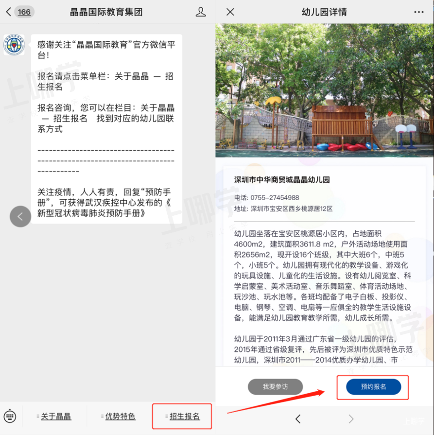 通常双语国际园的报名入口多为自己的官网或者公众号,不会严格地跟公办园报名入口同步。