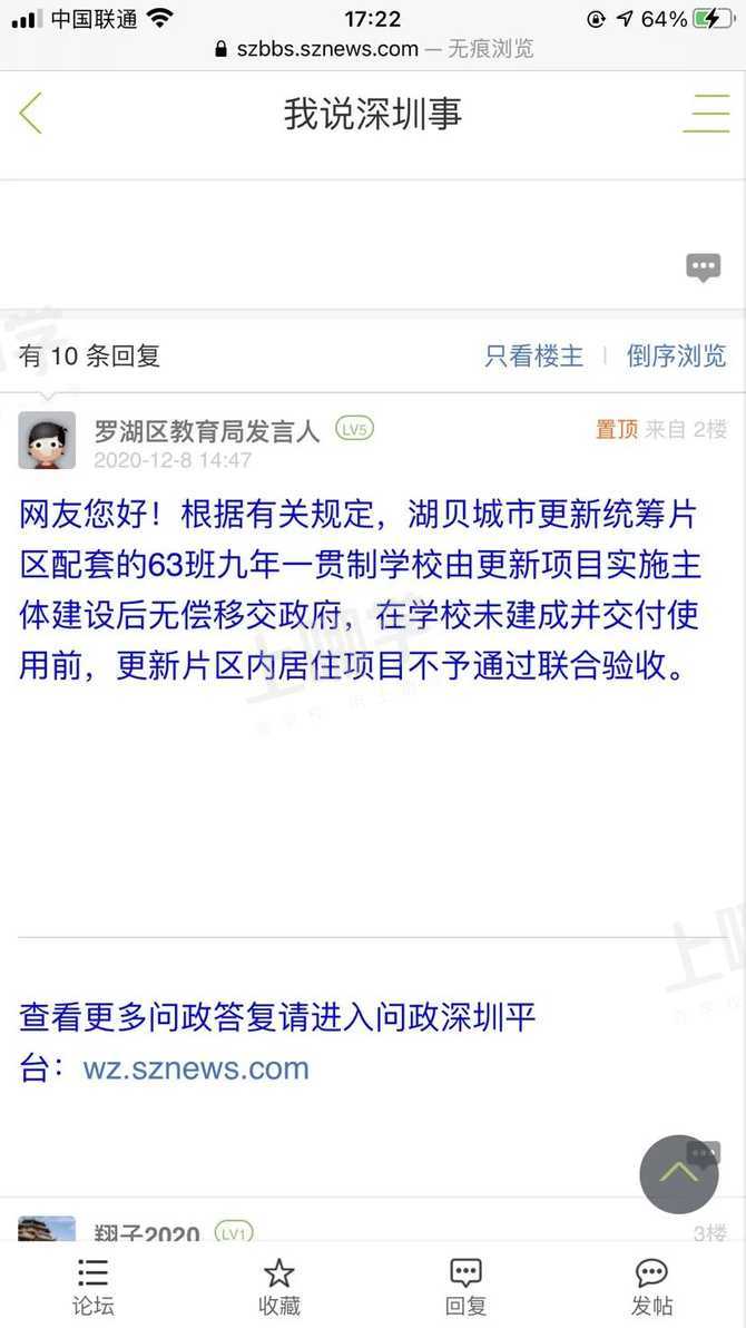 10871、此前有传言,湖贝新学校可能要建个十年八年,但很快罗湖区教育局就回复:学校没建完,其他住宅项目不能通过。