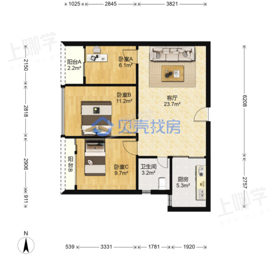 (参考户型图,来自贝壳找房)