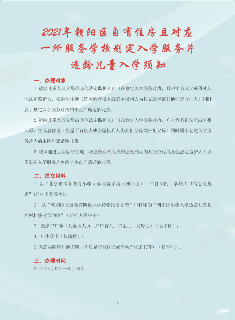 2021北京朝阳区小学入学流程!