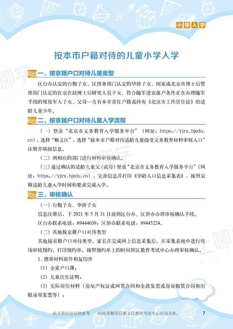 按本市户籍对待的儿童小学入学