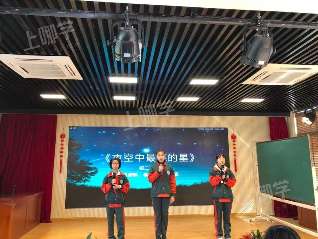 初二2班《追梦的男孩在鞍实》是原创歌曲,表演中洋溢着青春的热情。初二3班《夜空中最亮的星》压轴出场。最后则由初二4班吉他弹唱《下一站茶山刘》收尾。