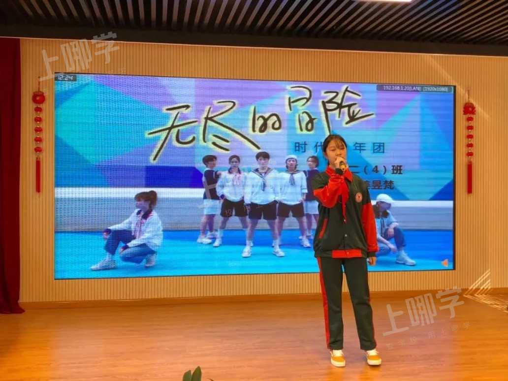 《无尽的冒险》与《攀登者》分别由初二4班、1班的同学独唱进行,扎实的唱功丝毫不输其他组合。