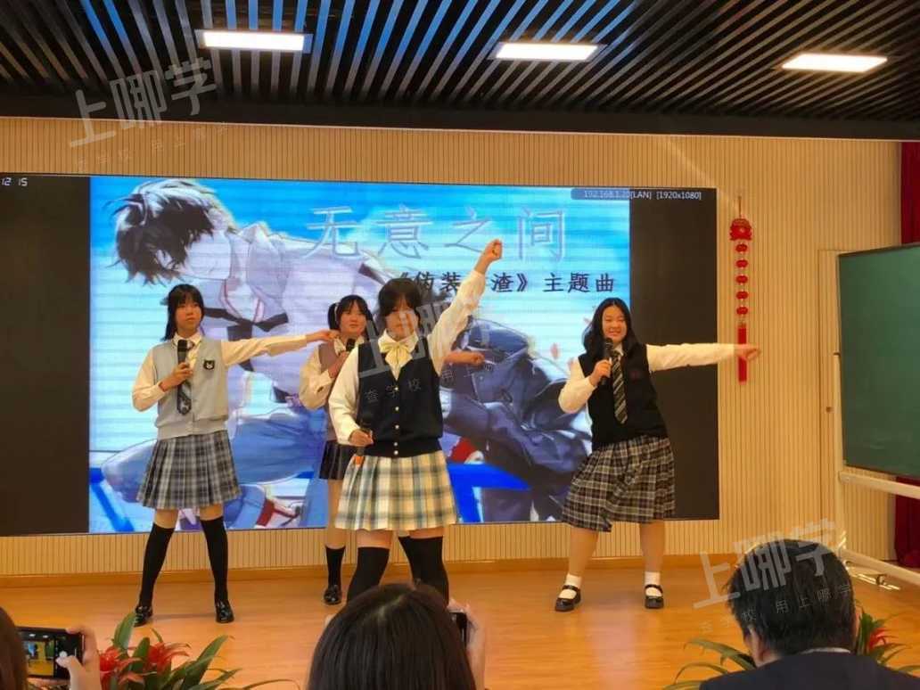 初二2班的唱跳组合《无意之间》配合默契,初二3班的同学深情演唱《爸爸妈妈》,歌曲中流露出的真挚情感不禁引起共鸣。