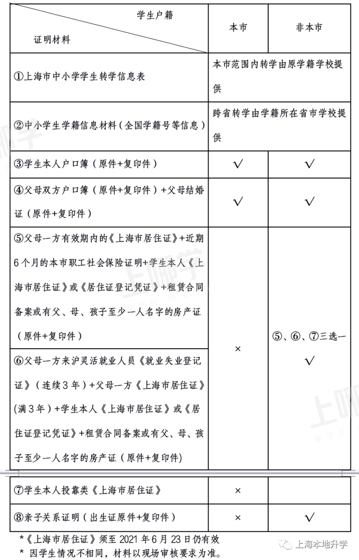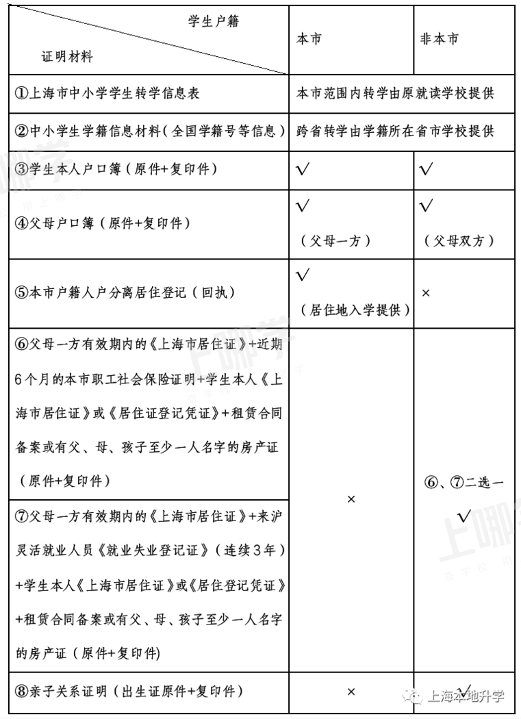 3、本市转学:由学籍所在学校出具的《上海市中小学生转学信息表》原件及复印件(小学段可提供《上海市电子学生证》);