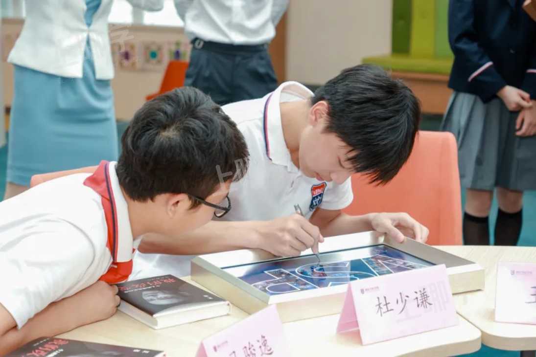 在交流环节最后,王石主席将自传《我的改变》亲笔签名后赠予同学们,表达了对孩子们的美好期许。孙校长送上学校精心准备的礼物,主席请在场的同学们签名以留作纪念。