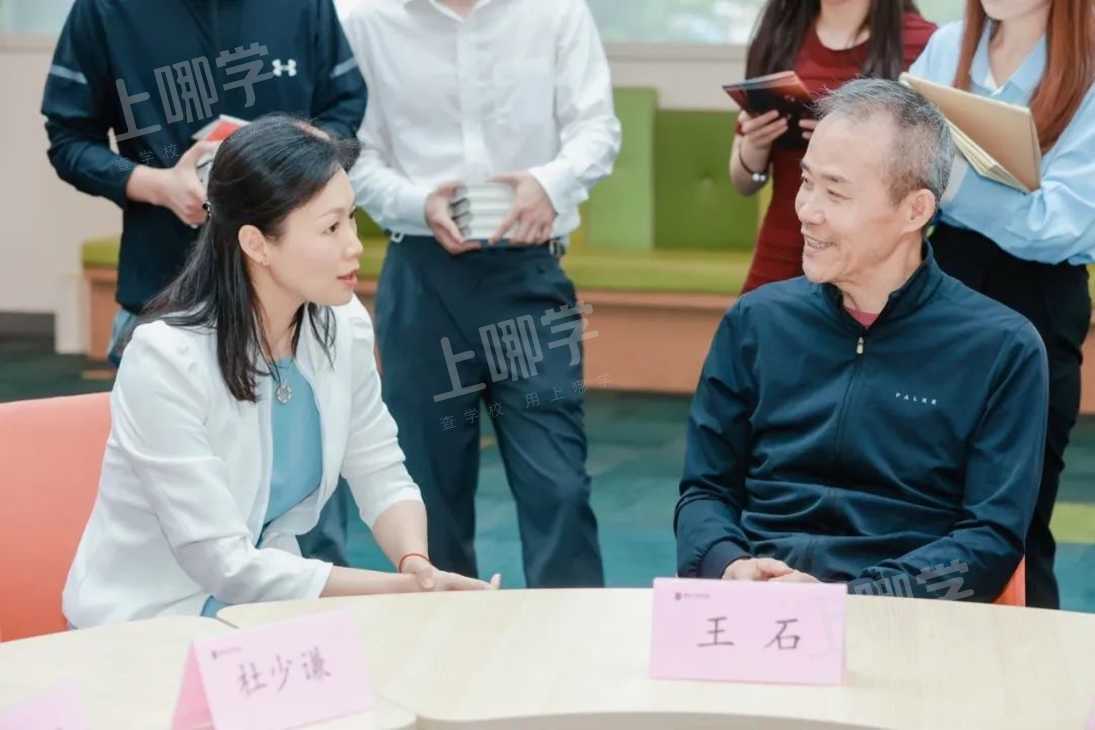 来到教学楼二楼的创意艺术展厅,王石主席与VSP学生代表做了亲切的交流。同学们积极发言,分享自己的学习感悟。