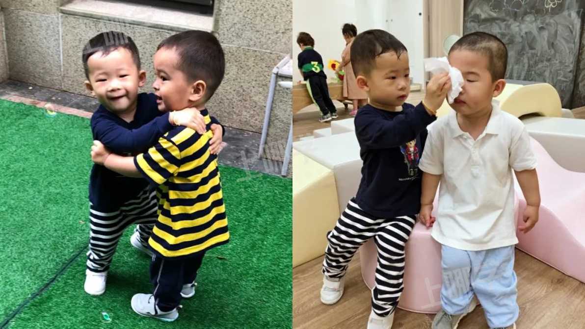 图为小朋友间互相关怀、有爱的画面,在这里,我们就是彼此的家人。