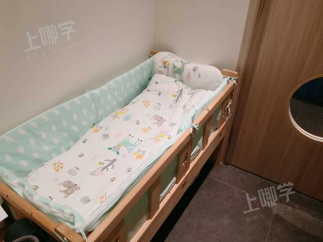 保健室内设有观察室。有舒适的小床供身体不适的孩子休息。