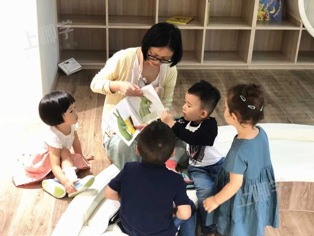 图为在绘本区老师为想要安静下来的孩子们讲述绘本故事,小朋友们在这里汲取各类知识及间接经验。