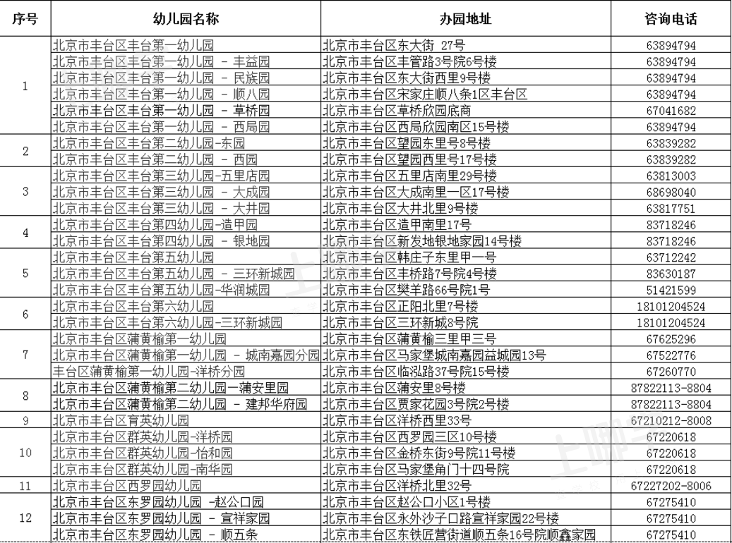 重磅!丰台发布普惠性幼儿园名录|权威发布
