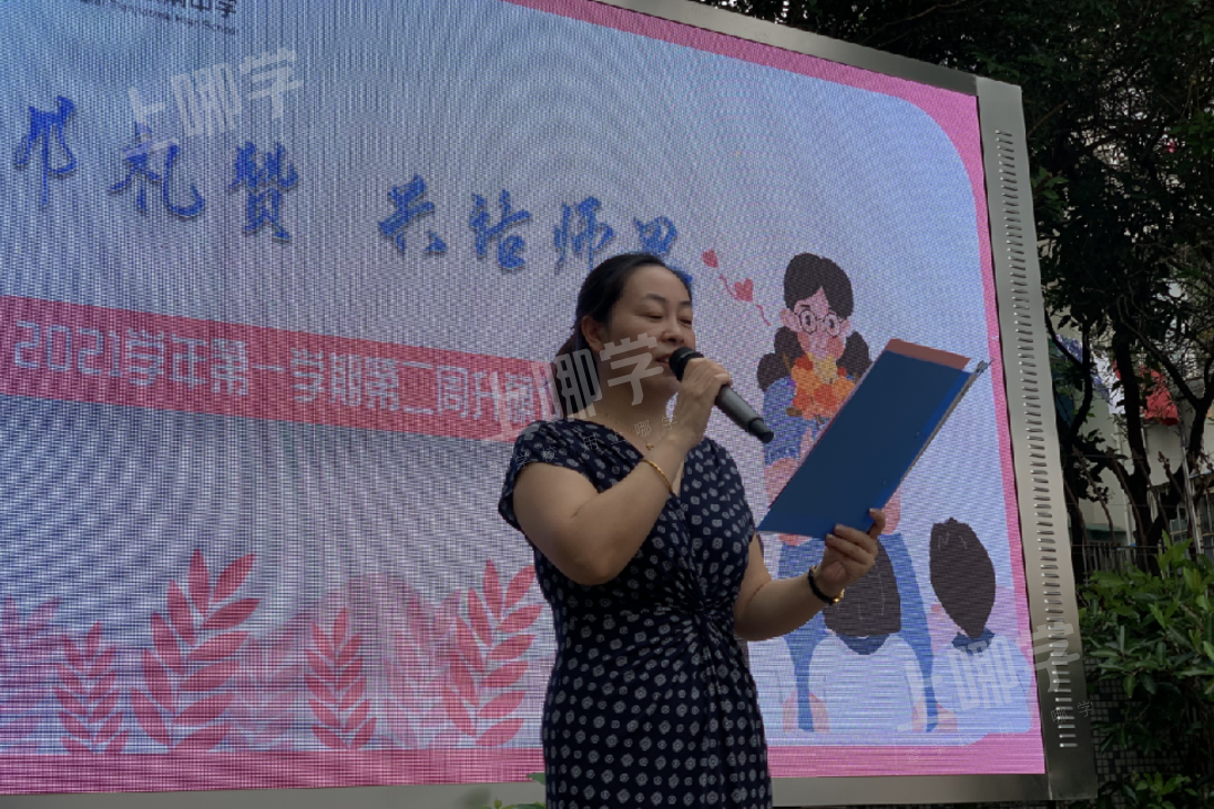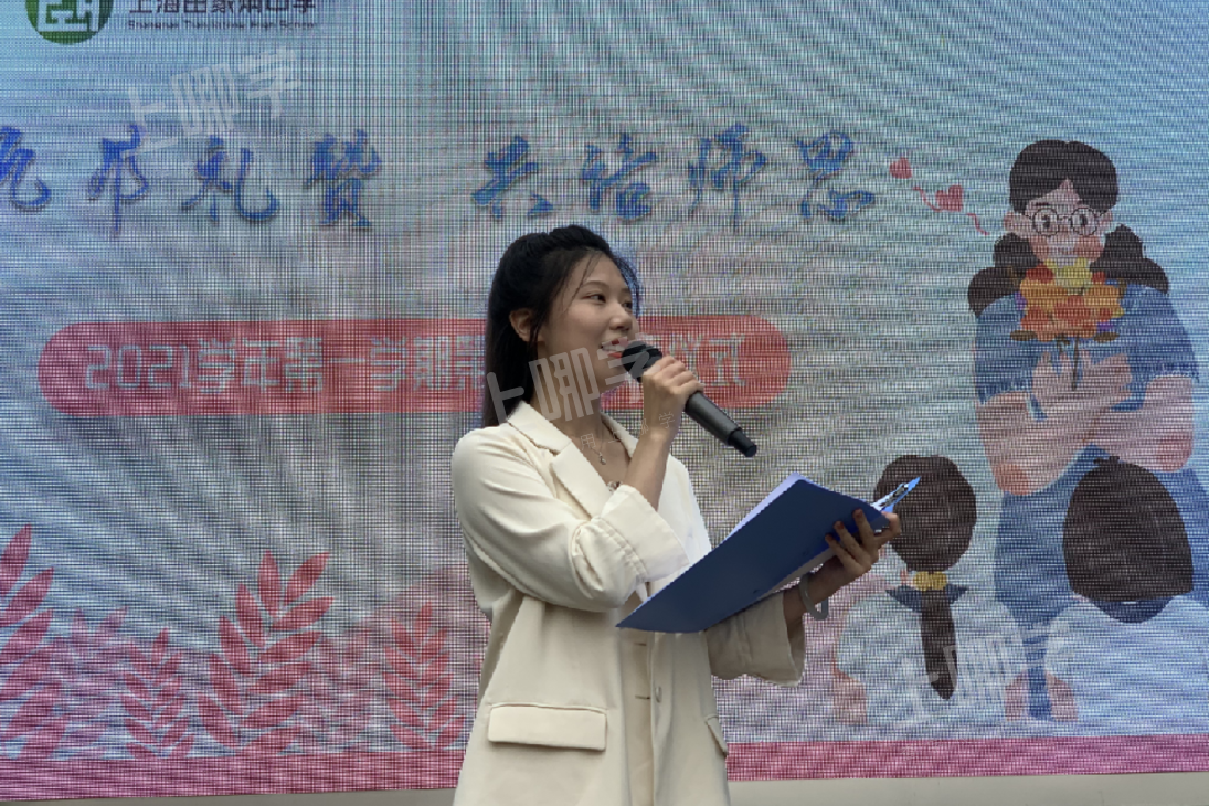 Cindy老师作为新老师代表讲述了自己进入学校之后的感受,同时讲述了自己对于教师这个职业的理解。她说道:“教书育人是每一位教师一生致力的方向。从站上讲台的那一刻起,我们就知道,教师不仅仅是一个职业,它承载着的是社会责任,是连接过去与未来的使命感。作为老师,我们要更加严格地要求自己,为人师表,以身作则,不仅要时刻注意自己的言行,更要不断提高自身的专业素养,努力成为学生心目中的榜样。”