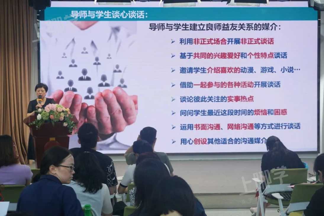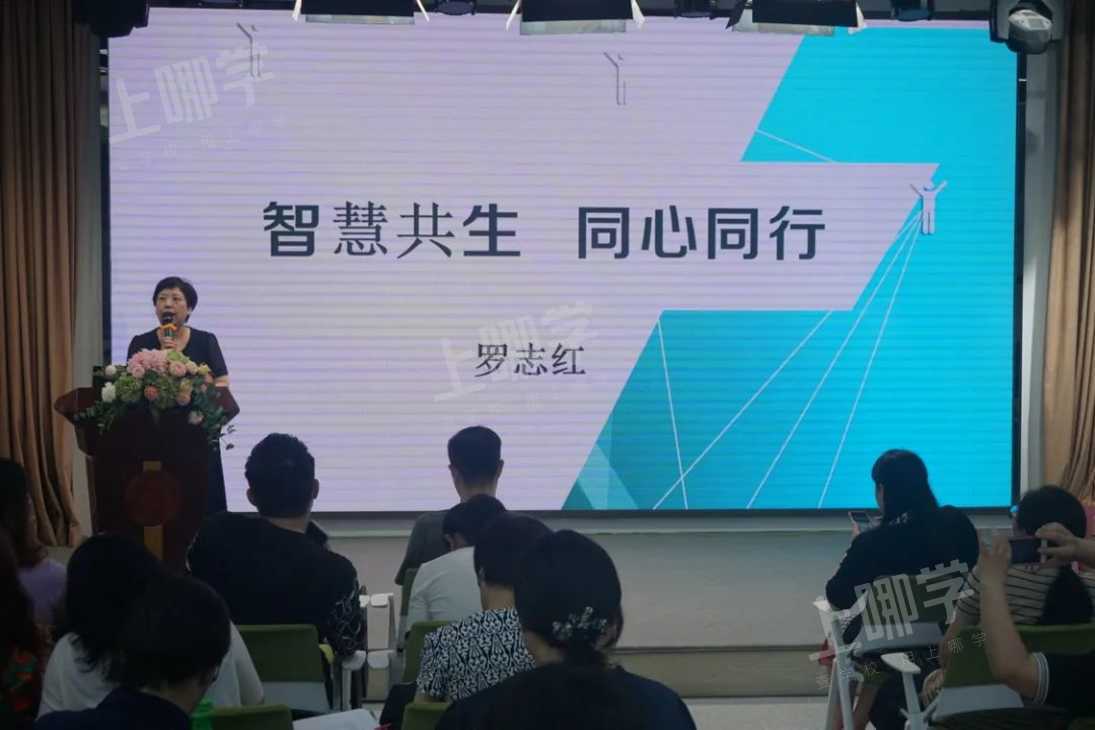 罗志红副校长的大会报告以《智慧共生 同心同行》为题,详细回应和解答了“谁做导师?”“导师的基本职责是什么?”“实施全员导师制‘’的目标是什么?”“学校如何配备导师?”“班主任、导师、学科教师各有怎样的角色定位?”“导师工作是否有‘规定动作’?”“学校的家校沟通管理会发生怎样的变化?”以及“导师能获得怎样的专业支持?”八个老师们普遍关心和迷惑的问题,提出了学校新学年全员导师制工作的设想和规划。