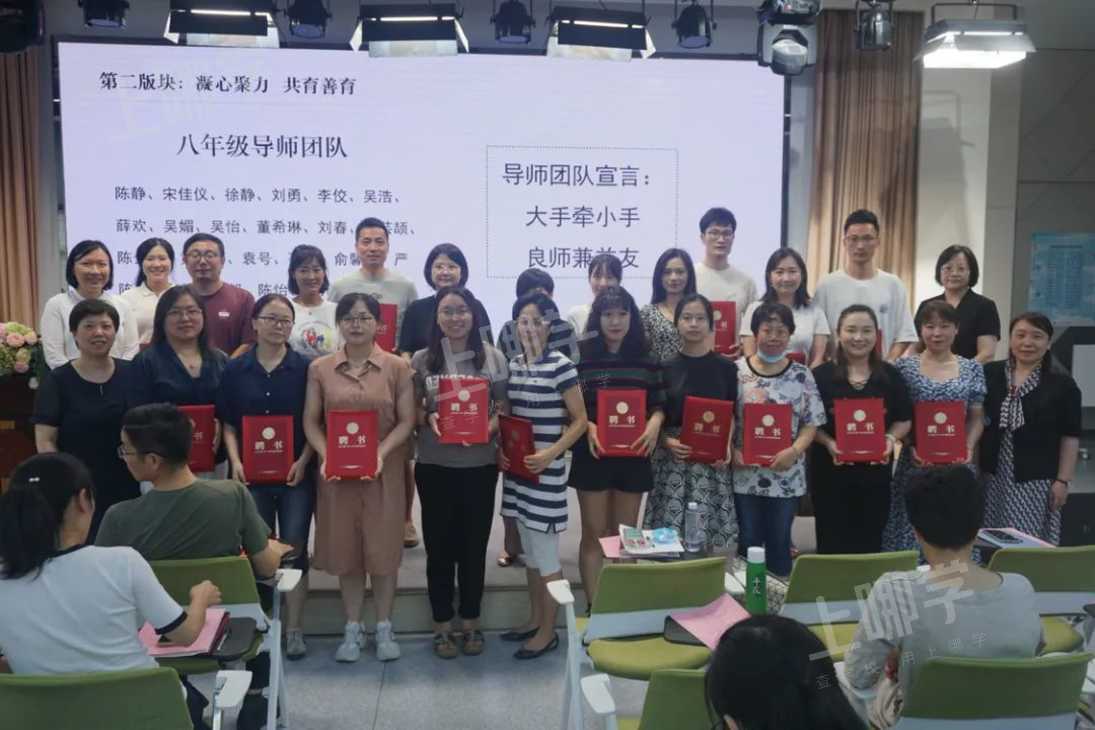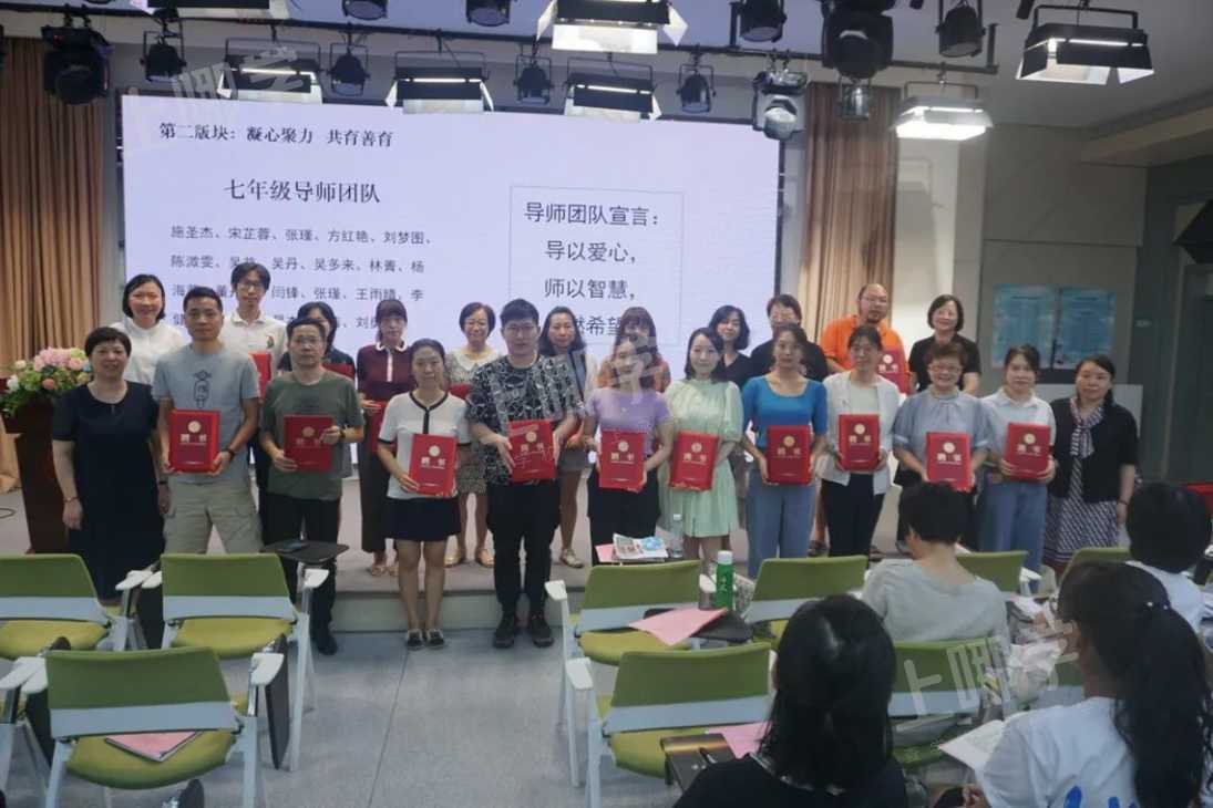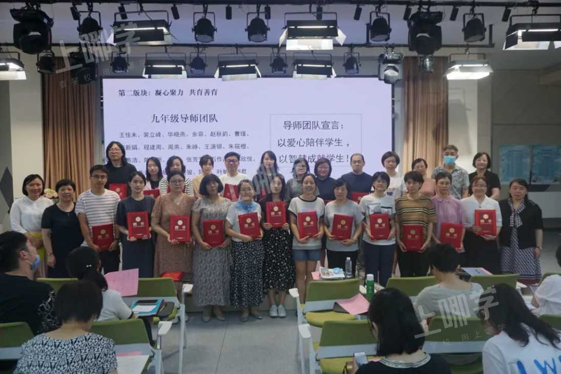 报告后,现场进行了隆重的全员导师聘任仪式,“导以爱心,师以智慧,点燃希望!” “大手牵小手,良师兼益友”“以爱心陪伴学生,以智慧成就学生!”喊出了卢湾中学全体导师坚决贯彻落实全员导师制工作的决心和信心。
