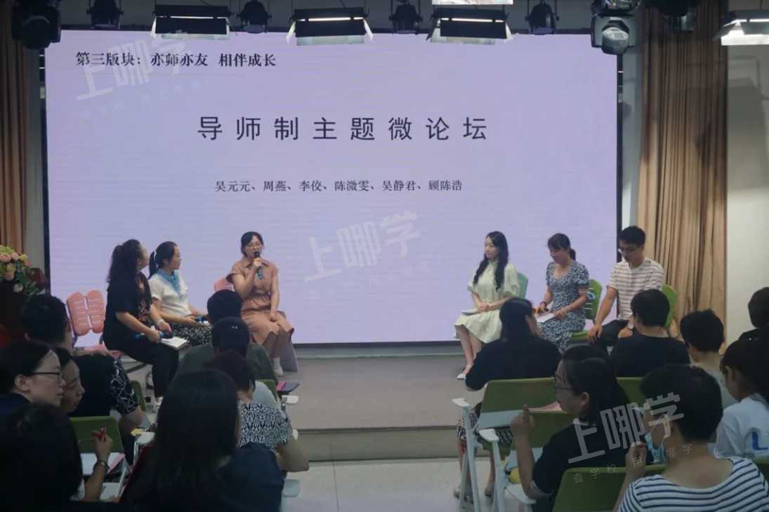 在“亦师亦友相伴成长”版块中,由吴元元、周燕、李佼、陈溦雯、吴静君、顾陈浩组成的导师微论坛,则分别从班主任、任课教师和专职心理教师的身份出发,用一个个鲜活生动的案例,向与会教师们展示了学校作为黄浦区全员导师制首批试点单位,所取得的显著成效和成功经验。