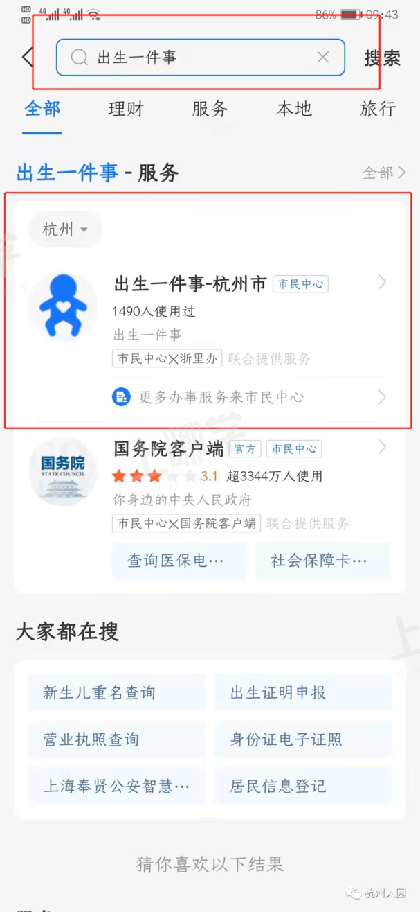 目前杭州推出了可以在浙江政务网和浙里办APP申办出生证的服务: