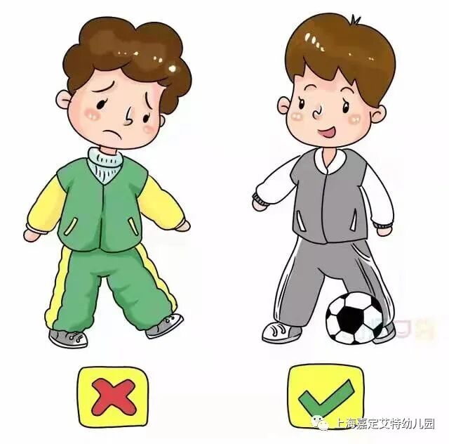 ❖ 特殊情况:孩子运动前,要给孩子换上吸汗、透气好、宽松的衣服。孩子做奔跑、跳跃等运动量大的活动时,要事先减少穿衣。当孩子玩得满身大汗时,千万不要急于脱衣服,应该把汗擦干,然后再把外衣穿上,这样才不至于感冒。