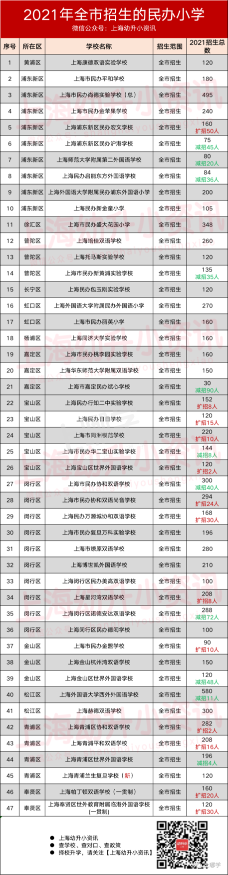 不限户籍、无房产要求!上海2021年全市招生的47所民办小学盘点!多所学校今年扩招!