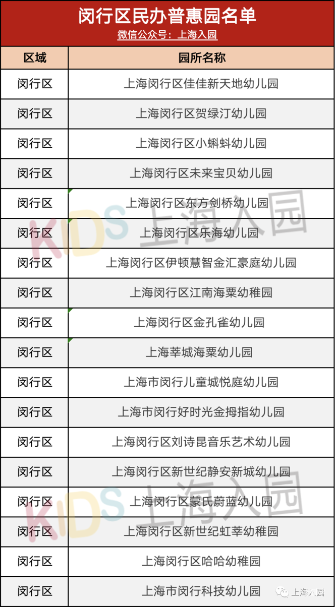 1318对口公办园报名要求严格,或者对口园所不理想的情况下,不少家长会提前寻找合适的民办幼儿园作为备选,那好而不贵的民办普惠园就是最佳选择!今天,入园君为大家搜集了一批上海各区的普惠园名单,其中闵行区普惠园数量高达76所!闵行的孩子们有福了!另外,多所幼儿园是今年刚转普惠,费用有较大下降幅度,像震旦外国语幼儿园更是直接从5800元/月下降到3000元/月,每个月整整下降了2800元!相当惊人了!内容较多,一次或许看不完,家长们可以点点收藏,方便下次查看~2021年拟通过认定的静安区普惠性民办幼儿园名单(第一批)进行公示。(公示截止日期:4月14日)名单提到8所幼儿园,具体名单如下:上海市震旦外国语幼儿园创办于2003年,是上海市一级幼儿园。幼儿园坐落于美丽的闸北区教育园区,原平路58号,占地8亩,建筑面积8838.492m.环境设施一流,教育理念先进,课程设计前瞻,活动内容多元。震旦外国语幼儿园可以说是这轮民转普惠的牌面园所,学费直接从5800元/月降到3000元/月,超高的教学质量加上大幅下降的学费,相信未来几年震旦外国语幼儿园都会一直热门下去。文件中认定上海黄浦区民办明日星幼儿园等11所民办托幼园所为黄浦区普惠性民办幼儿园,自本通知正式发布起生效,有效期三年。这11所托幼园名单如下:百灵鸟幼儿园是一所托幼一体化模式的幼儿园,为上海市民办二级园。幼儿园的特色是艺术,这里有手风琴、钢琴、绘画等各类艺术教育。在这儿上幼儿园的小朋友们,会经常参加区级、市级的各种比赛。在虹口区这次惠普性民办幼儿园认定的过程中,总共有4所园所成为惠普园,这4所惠普园名单如下:上海市白玉兰幼儿园创建于1989年9月,是上海市的第一批民办幼儿园。幼儿园的办学理念;坚持“让幼儿园成为幼儿心中的乐园,家长心中的绿洲”这一办学目标;把艺术教育特色融于课程实践,把多元文化融于游戏活动,使幼儿在游戏中感受快乐、展示自我、体验成功、获得自信。根据虹口区公示信息显示,转为普惠园以后,白玉兰幼儿园的学费从4500元/月降到3000元/月。嘉定教育局2021下发的文件中,将3所园所认定为优质惠普性民办幼儿园,具体的名单如下:上海青草地双语幼儿园,是一所民办二级幼儿园,创建于2002年,现有两个教学点,“丽晶园”位于新郁路180号,“金祥园”位于延川路246号。幼儿园以“优美的校园环境,优良的保教水平,优质的教育服务”为办园目标,培养“好身体、好习惯;乐学习、乐探究;爱运动、爱表达;擅交往、能乐群、有自信的青草地棒棒好儿童”。