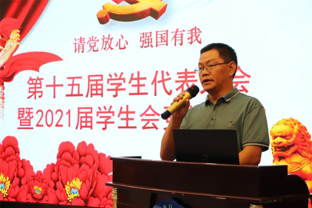 赖校长作大会总结。他寄语新当选的学生会干部:要志存高远,努力成为励志乐学、求索争先、明德向善、卓尔不群的人,进而成为祖国的建设者;要尽职尽责,多学学生干部的管理之道,以自己的言行去感染、带动周围的同学;要率先垂范,做各方面的楷模,为自己的未来奠基,为学校的明天添砖加瓦。