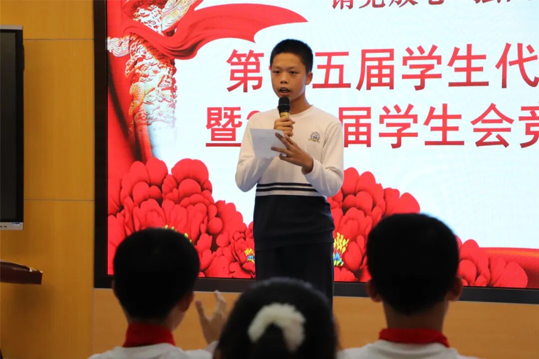 264为锻炼我校学生的组织能力和管理能力,培养学生的民主参与意识,进一步加强学校学生会、少先队、团委组织的建设,祈福新邨学校第十五届学生代表大会暨学生会竞选活动在融智室顺利召开!本次大会应到会正式代表131名,实到会代表131名。出席本次大会的校领导有赖伦雄副校长、李梓柠主任。