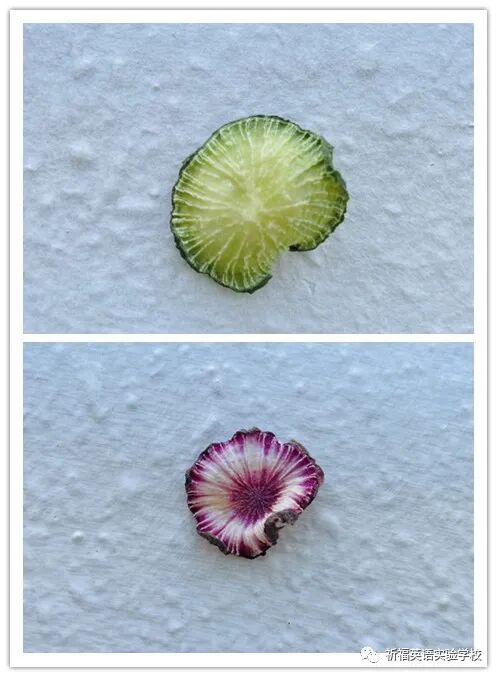 小朋友都观察了萝卜的外形,颜色,认识了各种萝卜的种类。那么萝卜切出来是怎样的呢?跟外皮的颜色是一样的吗?我们一起来看看吧。