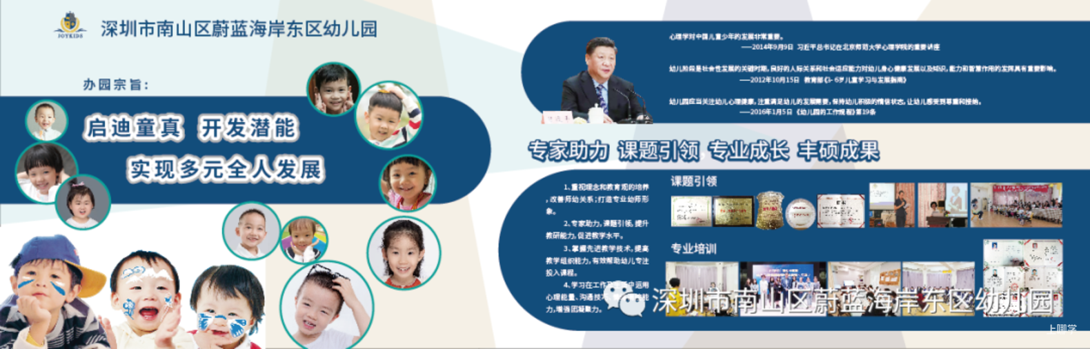 深圳市南山区蔚蓝海岸东区幼儿园是由卓越置业集团遵循中小幼一体化的办学思路,于2003年创办的高起点民办幼儿园,位于蔚蓝海岸三期社区内。园所管理模式按深圳市民办幼儿园执行,是“广东省一级幼儿园”、“深圳市优质特色示范幼儿园创建单位”、“广东省儿童心理健康教育课题示范园、基地园”。