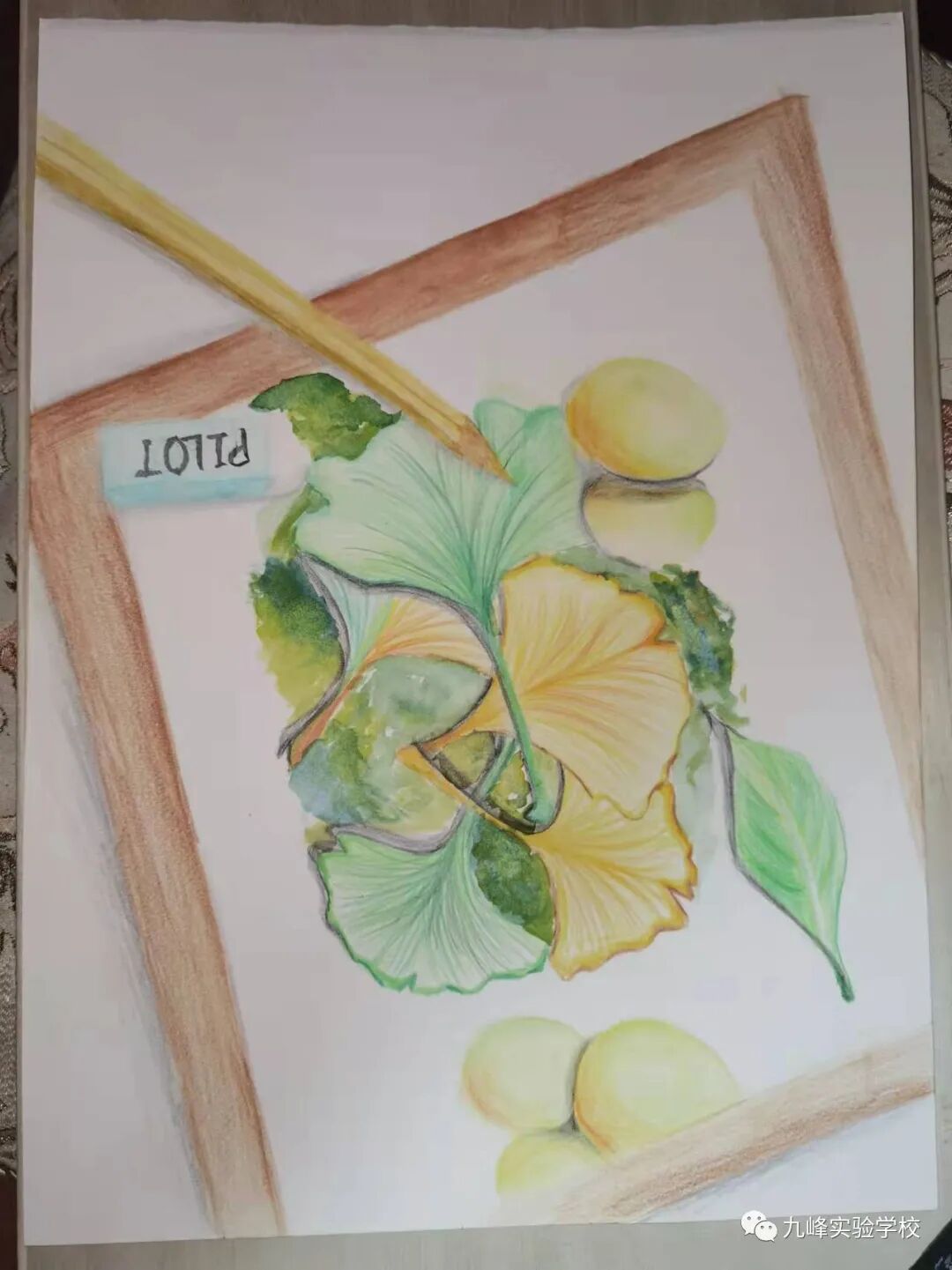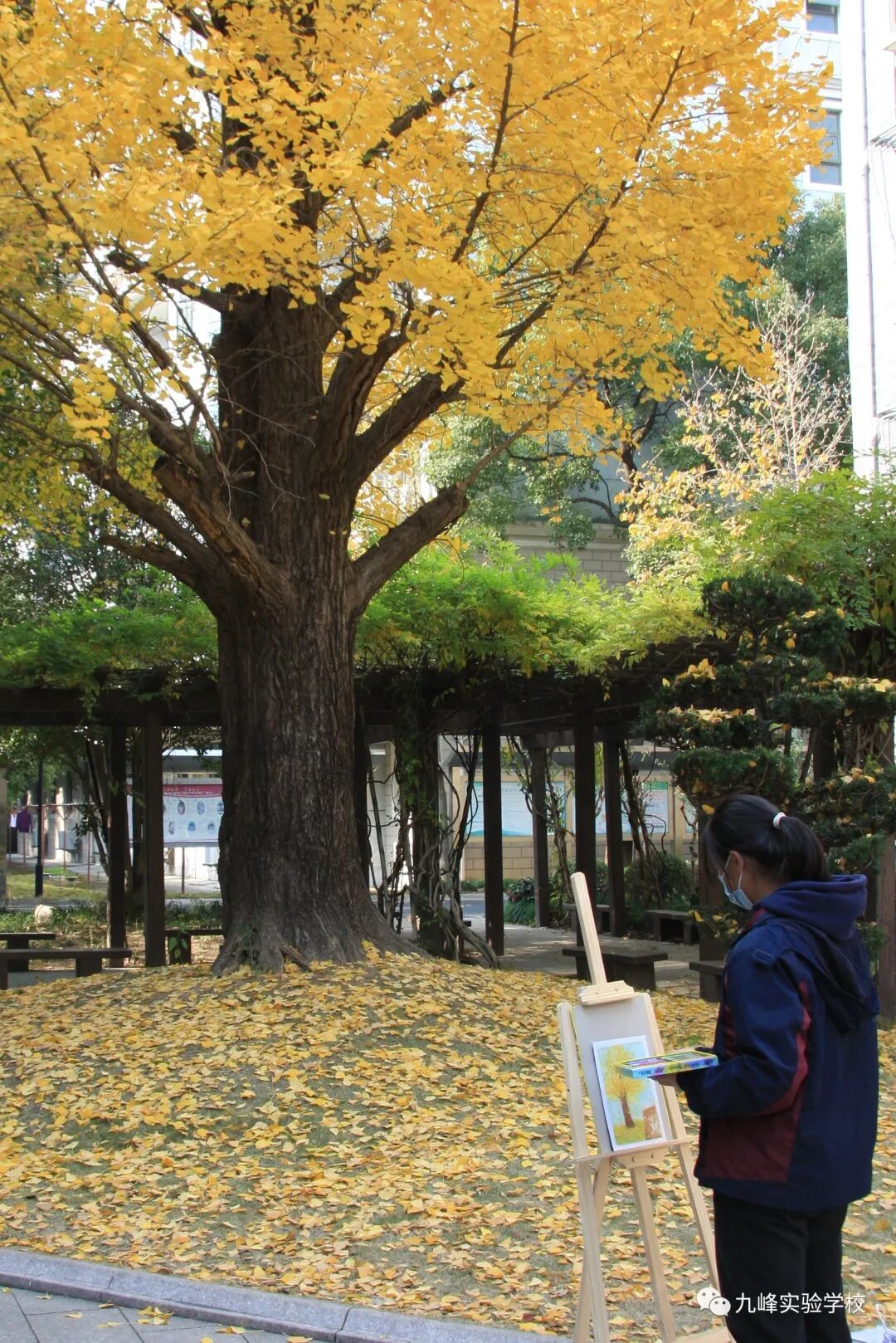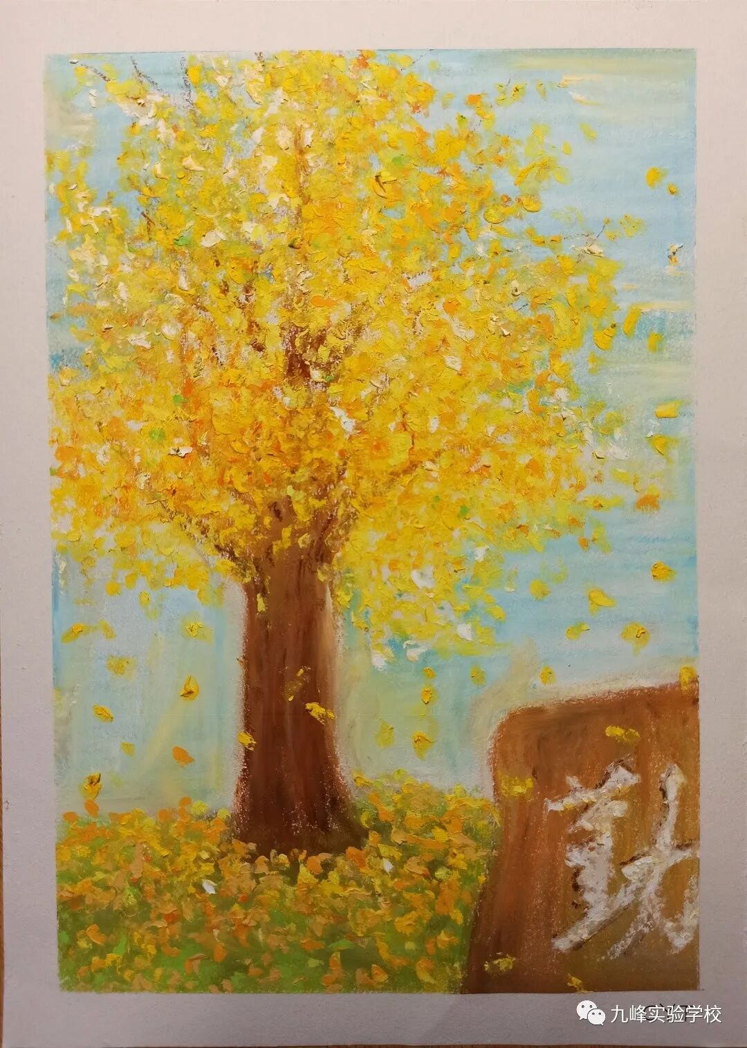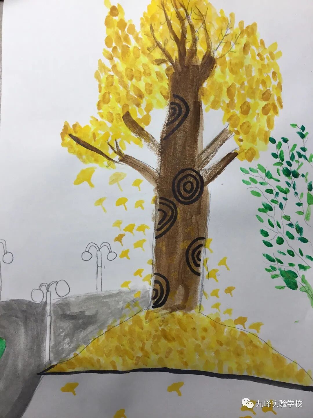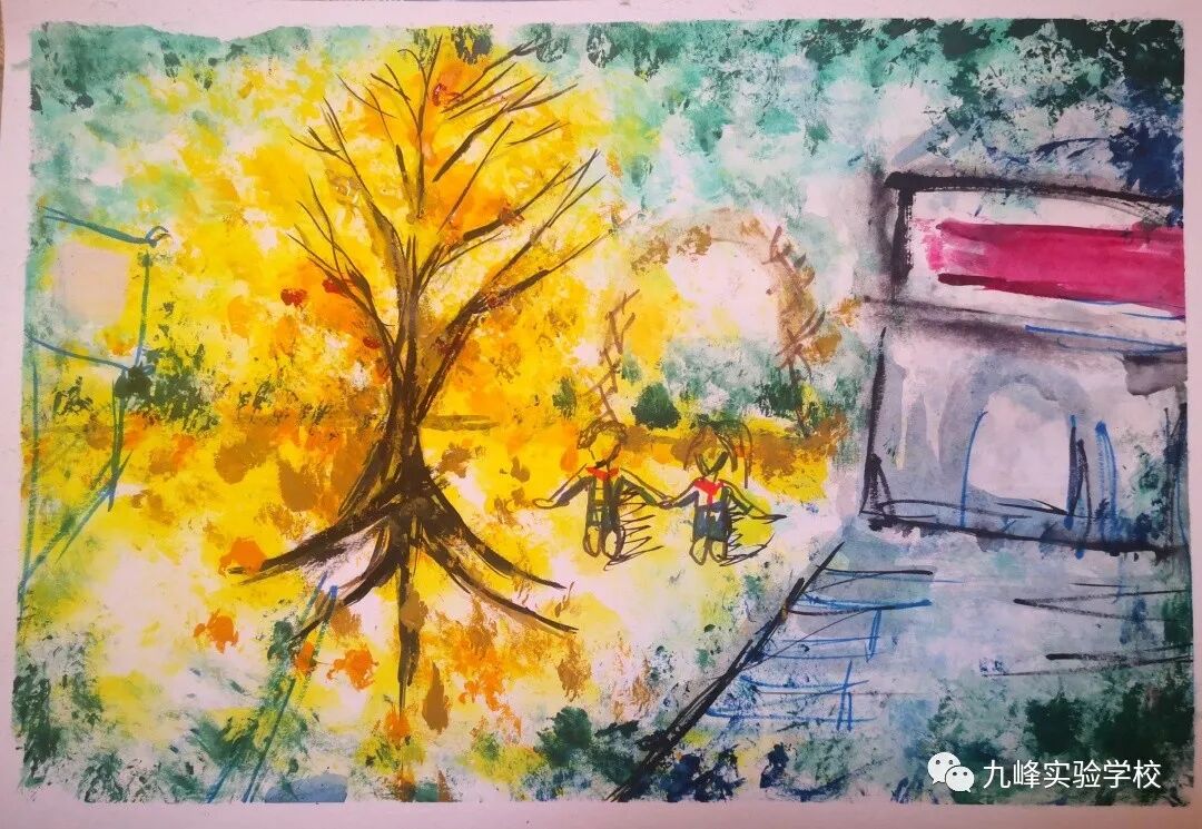 一年一度银杏黄,风吹银杏遍地金。寒风肃起,银杏便翻开了一年中最华丽的篇章,一树金黄似仙人彩绘、妙笔天成,同学们用手中的画笔将银杏的美描绘得淋漓尽致。