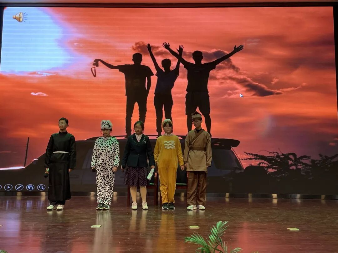 六、七、八年级的小演员们利用课余时间充分发挥想象力创作剧本,构思情节,设计台词,准备道具。舞台上,小演员们身着精心准备的服装和道具,全情投入表演。他们幽默的语言、丰富的表情、默契的配合、清晰优美的语音语调展现出了合作能力、表演能力和语言素养。接下来,跟着小编一起欣赏小演员们精彩的表演吧!