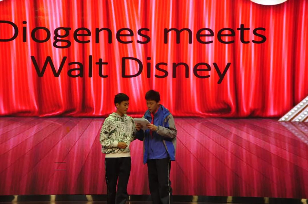 在八年级课本中,Walt Disney和Diogenes对快乐都有自己的见解,那么When Walt Disney meets with Diogenes,他们又能擦出怎么样的火花呢?