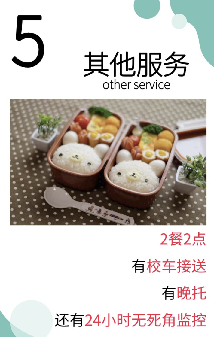 幼儿园提供两餐两点,即早餐、早点、午餐、午点。每天的餐食种类都很多,营养也均衡。园所还会每天监测孩子的饮食情况。