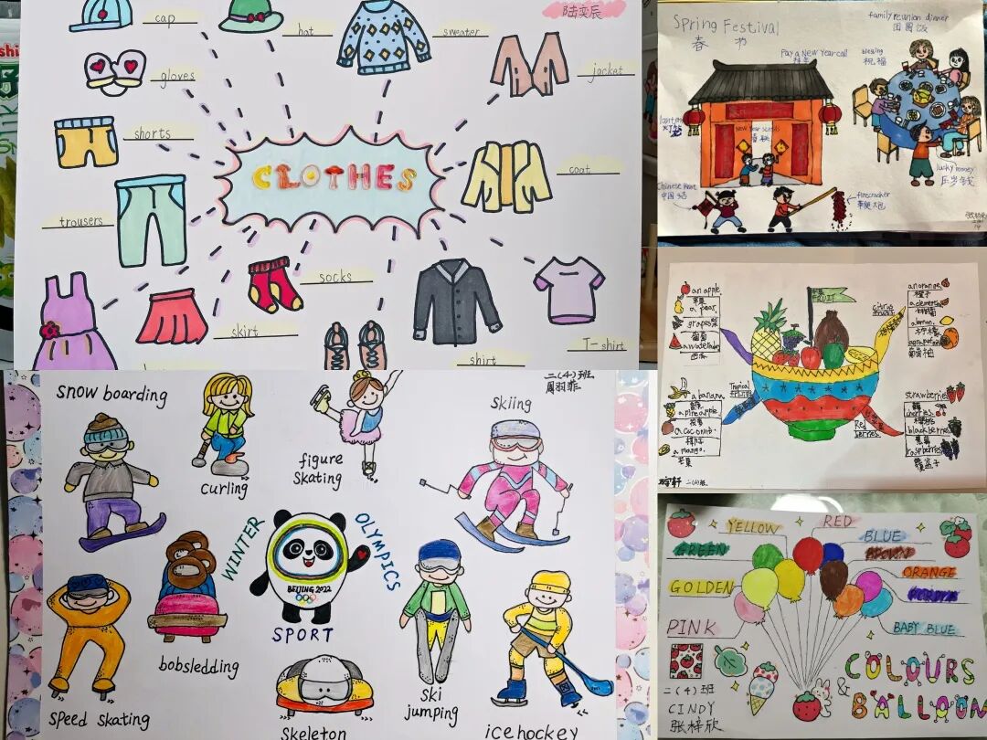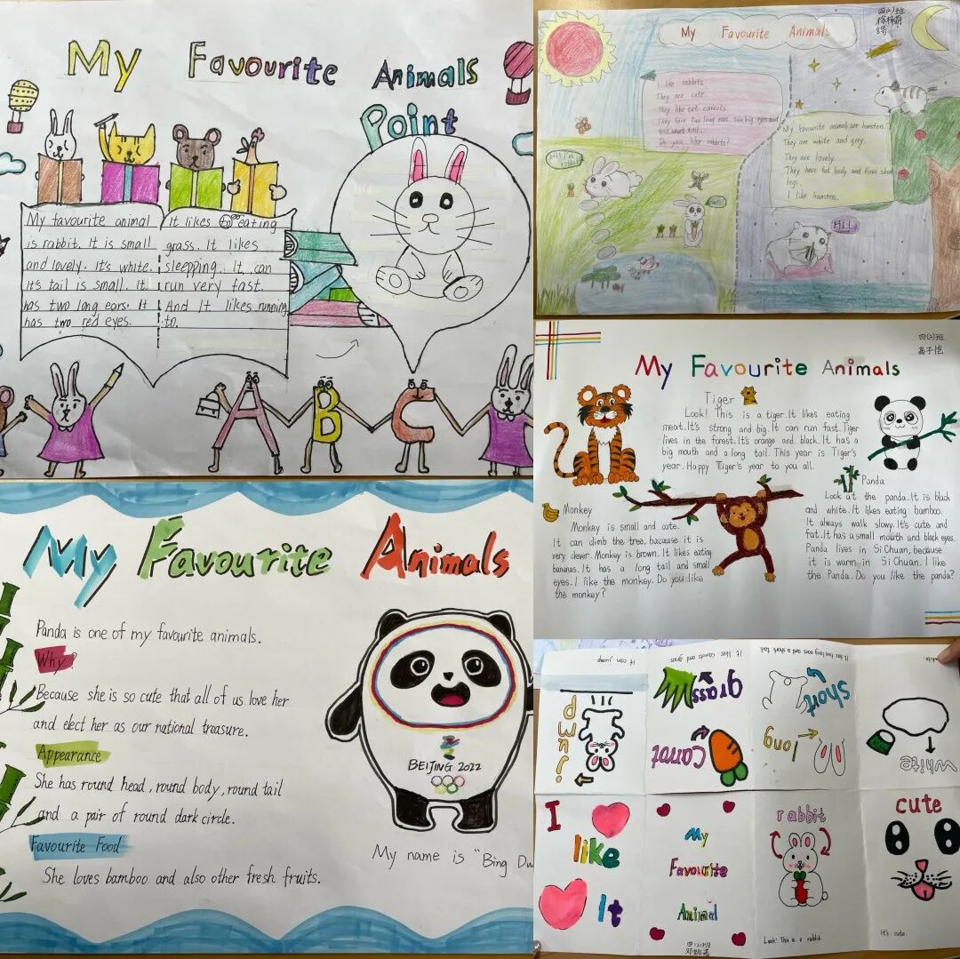 这个寒假,四年级的小朋友们围绕动物这个主题尽情发挥,以小报 、绘本等图文结合的方式介绍了自己喜爱的动物,有老虎,猴子,憨憨的小猪,可爱的冰墩墩,还有一些动物过新年的小创意,真是精彩纷呈!同时孩子们的英文表达也越来越好啦,真棒!