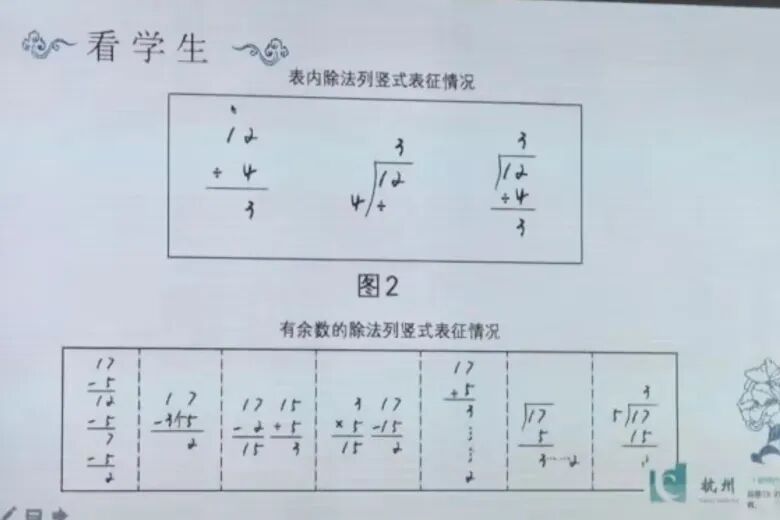 为了引发更多的思考,吴老师还带来了《“带余除法”问题探讨》。吴老师从专业的角度阐述了选择怎样的材料?为什么要突出关系?还可以有哪些拓展?并从“看教材”“看学生”“看设计”等方面为老师们指点迷津。教学工作任重而道远,吴老师的讲座让人如沐春风,收获满满,对老师们来说如此的及时与受用。