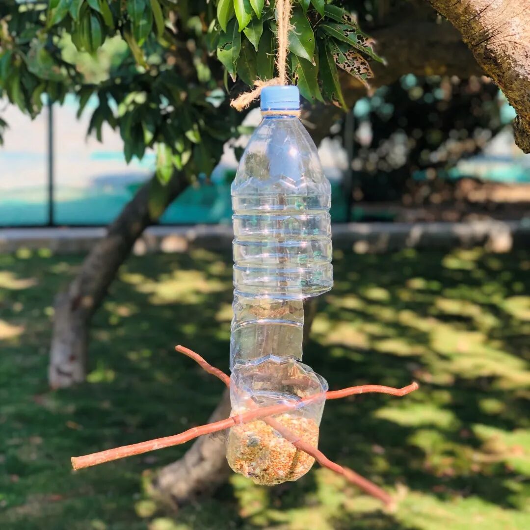 Ms. Danielle 组织学生给青青世界的鸟儿们做喂食器
