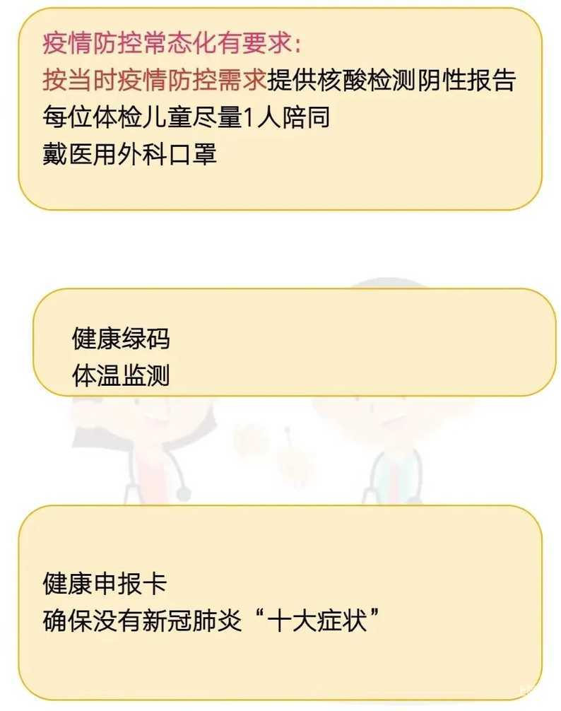 2.近期有不适的儿童暂缓体检,待身体康复再预约体检。