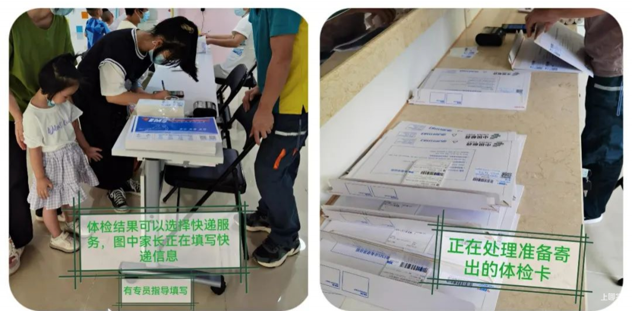 为了给家长提供便利,体检结果审核合格后可以选择快递到家,同时现场有专员指导家长填写快递信息,幼儿园新生体检就顺利完成啦!