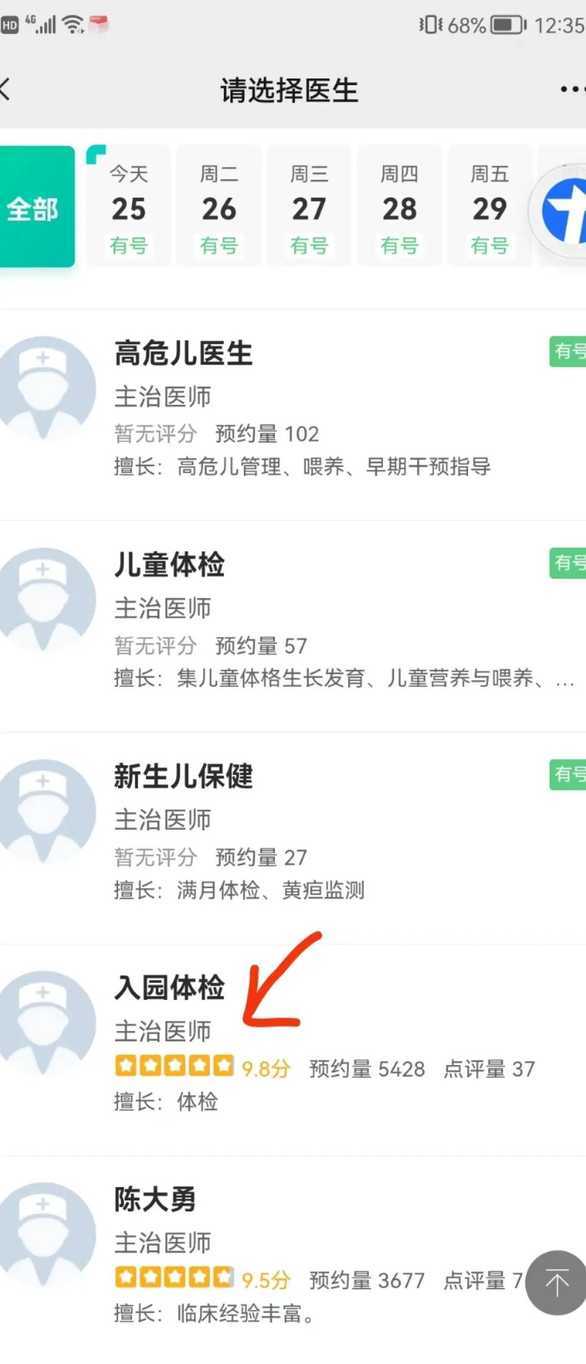 ❷ 先网上预约“幼儿入园体检号”,然后取号到儿童保健科导医台领取黄色体检卡。