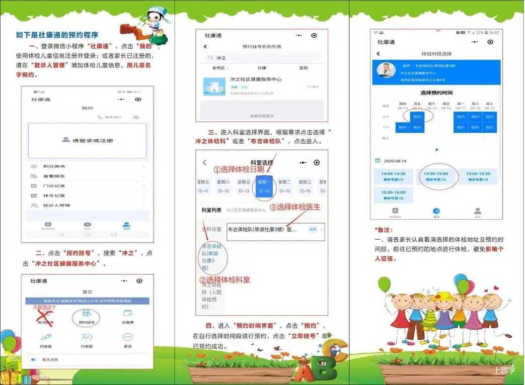 1、体检的儿童必须在【社康通】小程序预约挂号,不接受电话预约、现场预约。