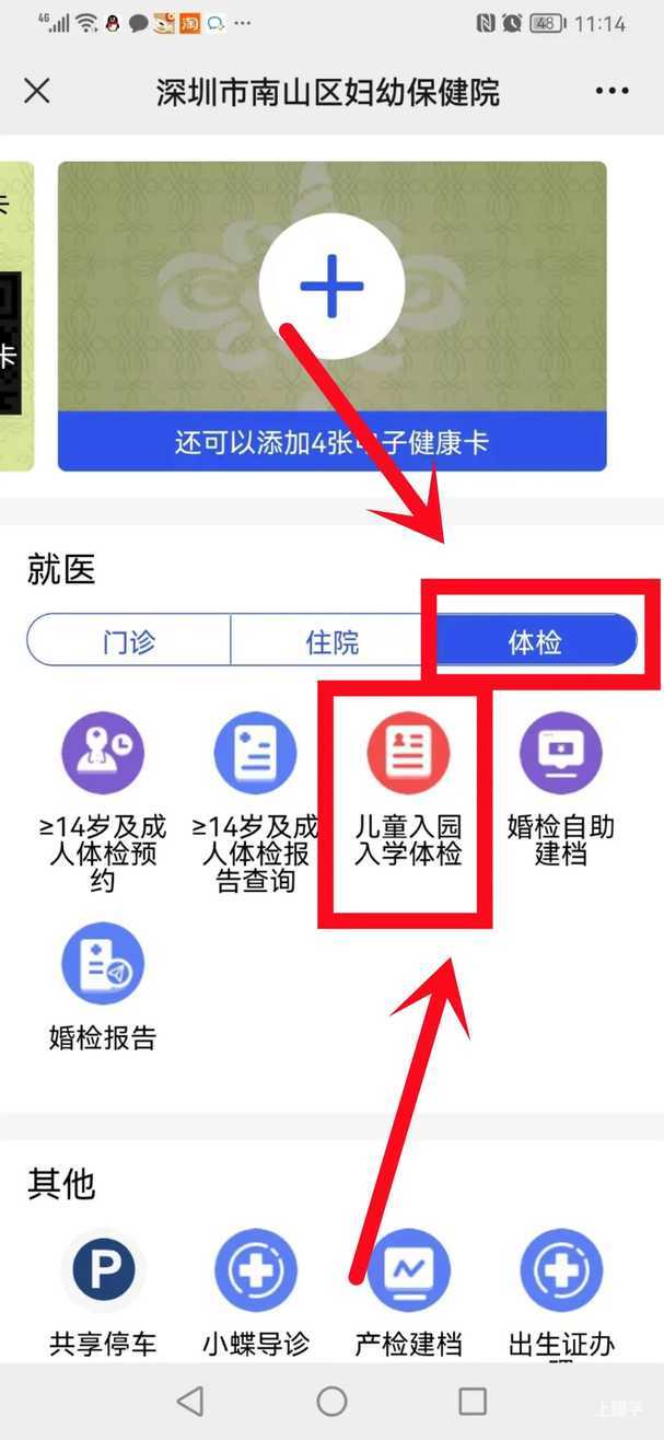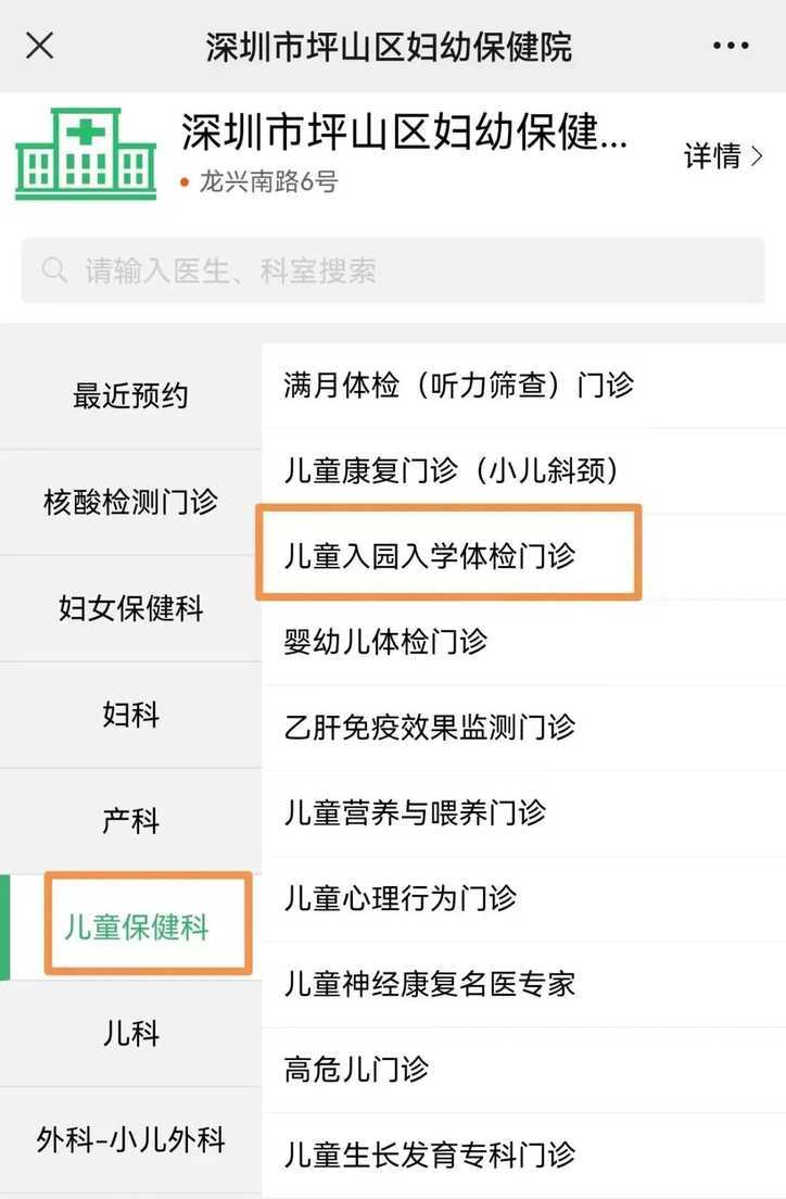 选择罗湖区妇幼保健院体检,需实行挂号预约制(请提前预约):家长关注“健康160”公众号预约挂号。预约罗湖区妇幼保健院儿童保健科的“入园入学体检”、“生长发育门诊”或“营养门诊”(三选一均可)。