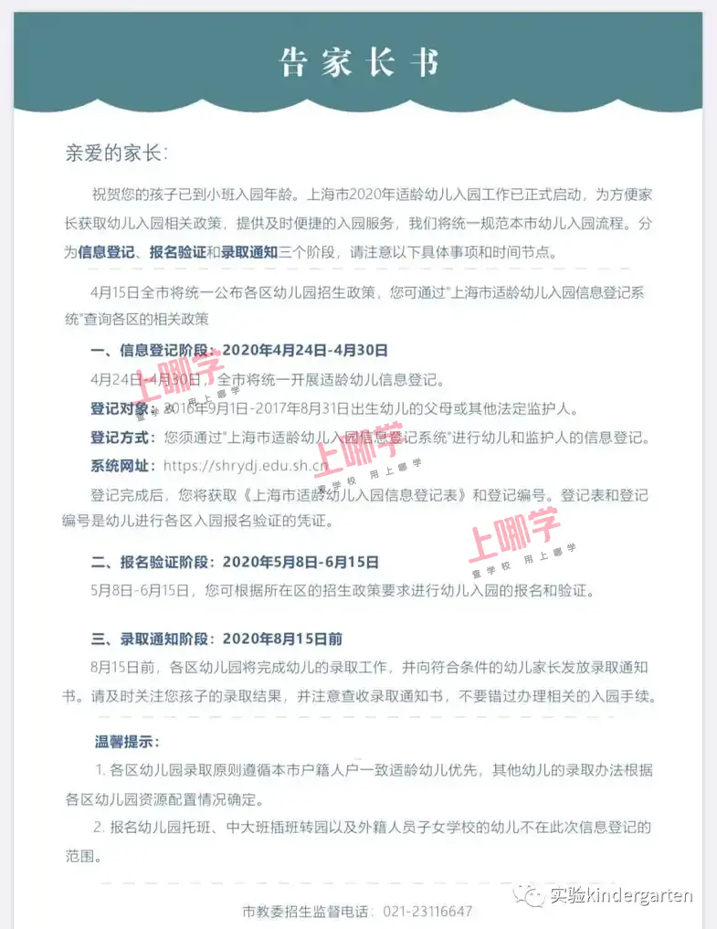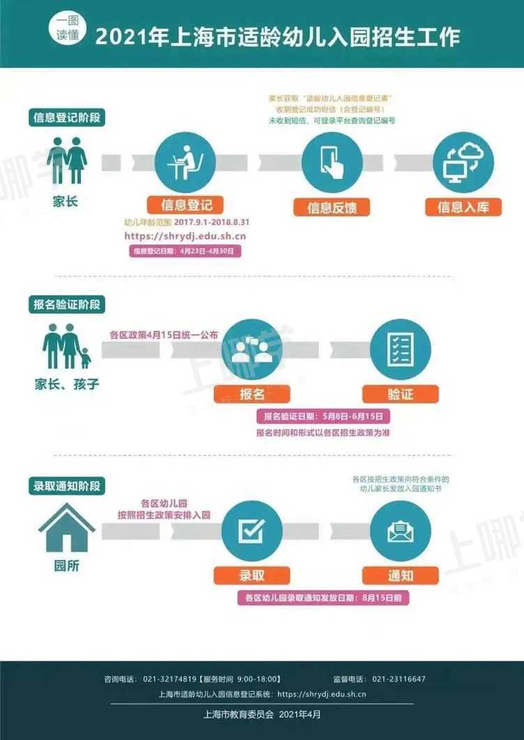 4月23日-4月30日,适龄幼儿监护人须在上海市适龄幼儿入园信息登记系统。