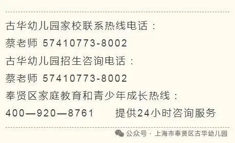 以上内容来源于“上海市奉贤区古华幼儿园”公众号