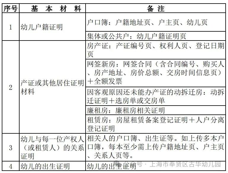 2023古华幼儿园招生简章 古华幼儿园创建于1989年9月,幼儿园现为公办二级A类园,园所坐落于南桥古华老城区,幼儿园布置温馨优美,凸显快乐阅读特色。幼儿园坚持“快乐体验,健康成长”的办园理念,深入开展教育教学实践研究。32年的园史积淀了幼儿园的发展内涵,同时为幼儿园赢得了社会声誉。现根据《奉贤区教育局关于2023年学前教育招生工作的通知》要求,制定古华幼儿园招生简章。 一、招生对象 2019年9月1日至2020年8月31日期间出生的幼儿,身体健康(无慢性传染病)、能独立参加集体活动的本市户籍幼儿。 二、学区范围 东至新横泾河、南至南奉公路(划出古华A区)、西至人民路(划出人民路东)、北至浦南运河 参考小区(村):古华一区、古华二区、曙光新村、金鹏花苑、良友新村、万隆花园、万龙小区、航星一村、奉苑新村、运河一村、运河二村、古华B区、立新小区、北街小区、中街小区、水上新村。 三、收费标准 四、材料提交 2023年幼儿入园实行全程网办,所有的验证资料请全部上传到“奉贤区适龄幼儿入园报名系统”。家长可参照报名系统提示填写信息,并直接选择“随申办”或“一网通办”中的电子证照进行上传,电子证照库里未能显示的证照,请家长自行上传证照扫描件(或照片)。 证照提供参考如下: 1.户口簿一般上传:户籍地址页、户主页、父或母页、幼儿页 2.房产证一般上传:产证编号页、登记日页、产权人页 3.幼儿与每一位产权人的关系证明一般上传:户口簿(地址页、户主页、(外)祖父或(外)祖母页、父或母页)出生医学证明等,用于证明每一位产权人与幼儿关系 五、报名流程 本次小班幼儿入园流程分为网上信息登记、网上报名验证、录取通知三个阶段。 第一步:网上信息登记。 4月20日—4月27日,适龄幼儿监护人通过上海市适龄幼儿入园信息登记系统(登录“一网通办”网站首页,网址:https://zwdt.sh.gov.cn,进入“2023年适龄幼儿入园”特色专栏,或登录“随申办”移动端首页“2023年适龄幼儿入园”)进行统一的信息登记,获取《上海市适龄幼儿入园信息登记表》和登记编号。 第二步:网上报名验证。 (1)网上报名。5月8日-5月15日“奉贤区适龄幼儿入园报名系统”(登录“一网通办”网站首页,网址:https://zwdt.sh.gov.cn,进入“2023年适龄幼儿入园”特色专栏,或登录“随申办”移动端首页“2023年适龄幼儿入园”,选择“奉贤区”进入“奉贤区适龄幼儿报名系统”),填写信息并直接上传电子证照,最后勾选“上海市奉贤区古华幼儿园”,完成后会收到报名成功短信和报名编号。 (2)网上验证。5月16日-5月22日,我园按照招生简章、学区划分做好本市户籍学区生网上验证工作。期间,如出现上传材料不完整、有异议等原因,可退回并对监护人注册手机发送短信,提示监护人及时进入“奉贤区适龄幼儿入园报名系统”,重新补正相关佐证材料。 第三步:办理录取手续。 6月10日-6月30日,幼儿园在完成信息审核基础上确认预录取名单,上报区教育局审核。经区教育局审核通过后,我园将通过短信提示或电话通知等方式告知家长办理入园手续。 7月1日-7月6日,请家长按照通知要求,领取《录取通知书》,办理正式录取手续。 注:信息登记和报名验证仅为幼儿信息确认和材料受理,非录取结果,录取结果须以《录取通知书》为准。 温馨提示: 1.本区小班幼儿入园推行全程网办,如监护人确因困难无法自行完成网上信息登记和网上报名,或错过网上信息登记导致无法网上报名需要补登记的,可通过电话咨询预约后前往就近的线下指导服务点寻求现场帮助,见公告 《2023年奉贤区适龄幼儿入园线下指导服务点》。 2.本市户籍入园问题:请拨打所报幼儿园咨询电话,见公告《2023年奉贤区本市户籍适龄幼儿入读公办园学区解读》或园所招生简章。 3.随迁子女入园问题:请拨打所报街镇教育管理办公室咨询电话,见公告 《2023年来沪人员随迁子女入读公办园咨询电话及信息公示网址》。 4. 关于本市户籍特殊幼儿入园问题请拨打三所开设特教班的园所咨询电话: 67106906*107(奉浦幼儿园) 57515525*820(金蔷薇幼儿园) 57446748*801(柘林幼儿园) 古华幼儿园微信公众号:fxghyey@sina.com 奉贤区教育局咨询电话:021-37597019 古华幼儿园招生咨询电话: 021-57410773*8002 古华幼儿园招生负责人手机:13918227815