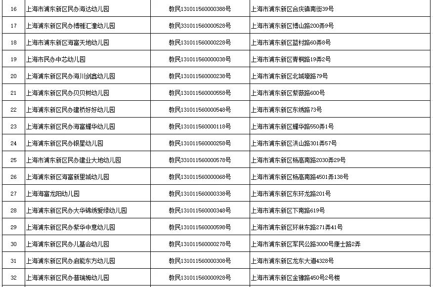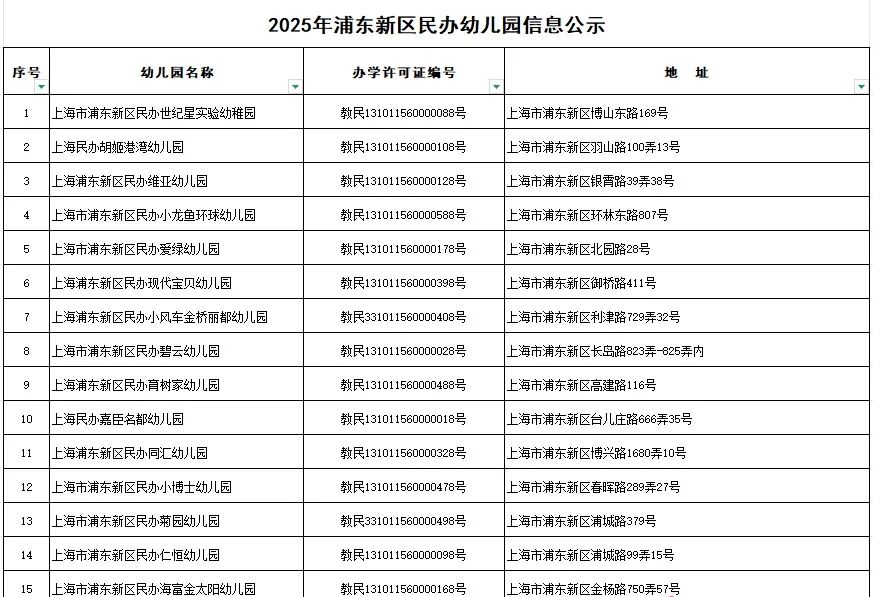 附:2025年浦东新区民办幼儿园信息公示