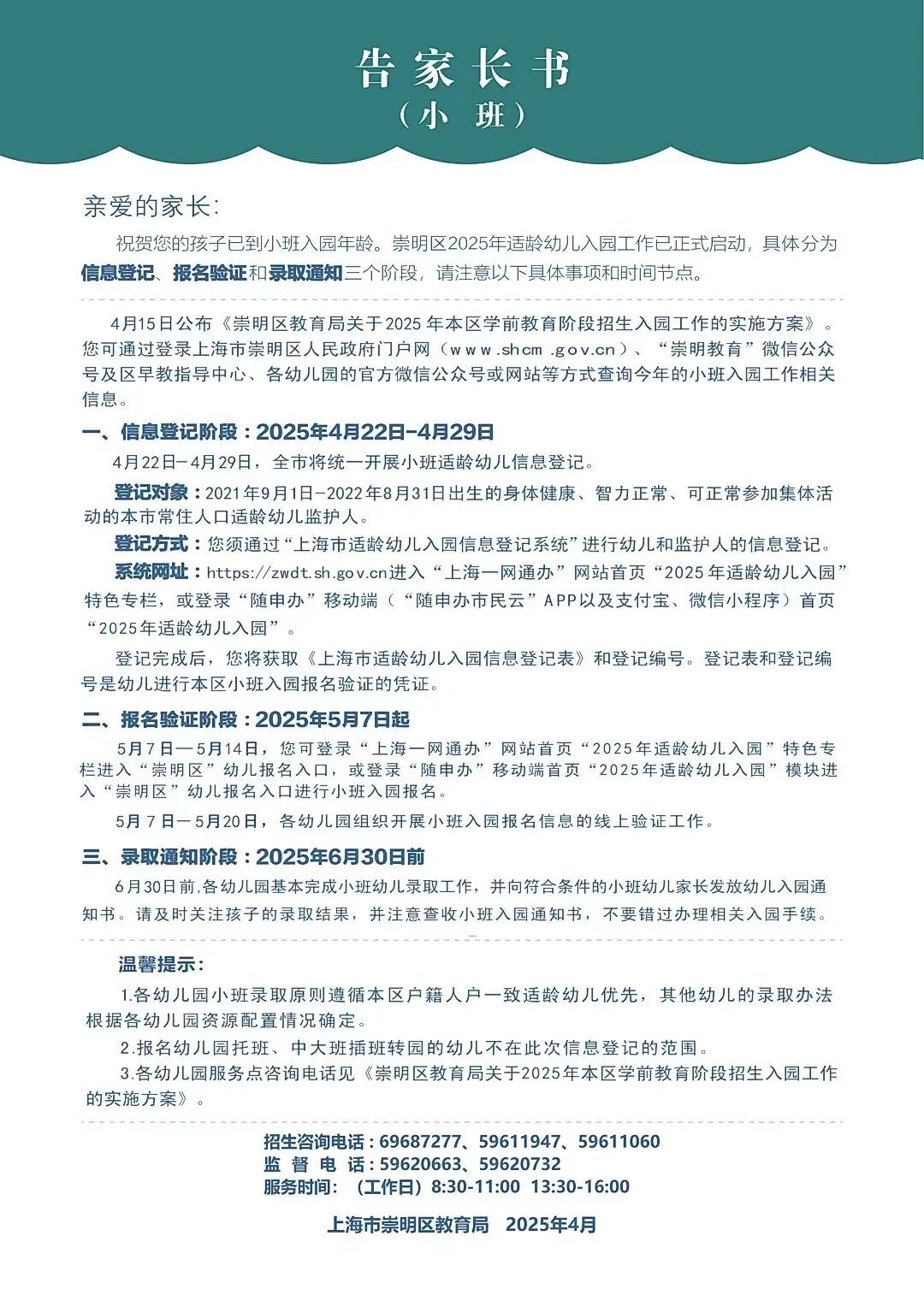 2020年上海市崇明区建设幼儿园小班招生工作即将开始,现将具体招生办法通告如下:
