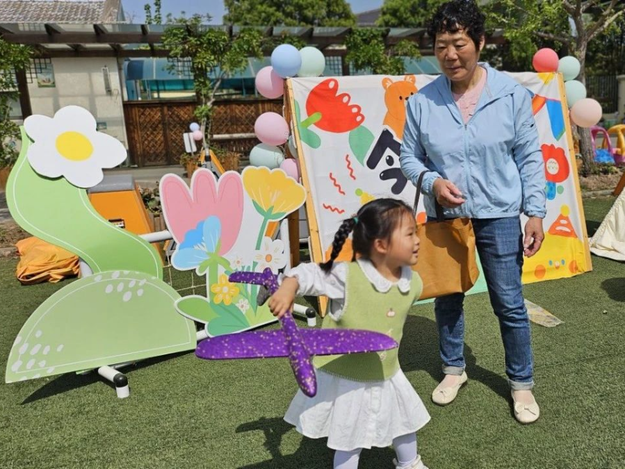 校园探秘中,家长们手牵宝贝,穿梭于大操场、星星小菜园与各类专用活动室等,触摸春日绿植,并在各活动场所留下童真剪影。