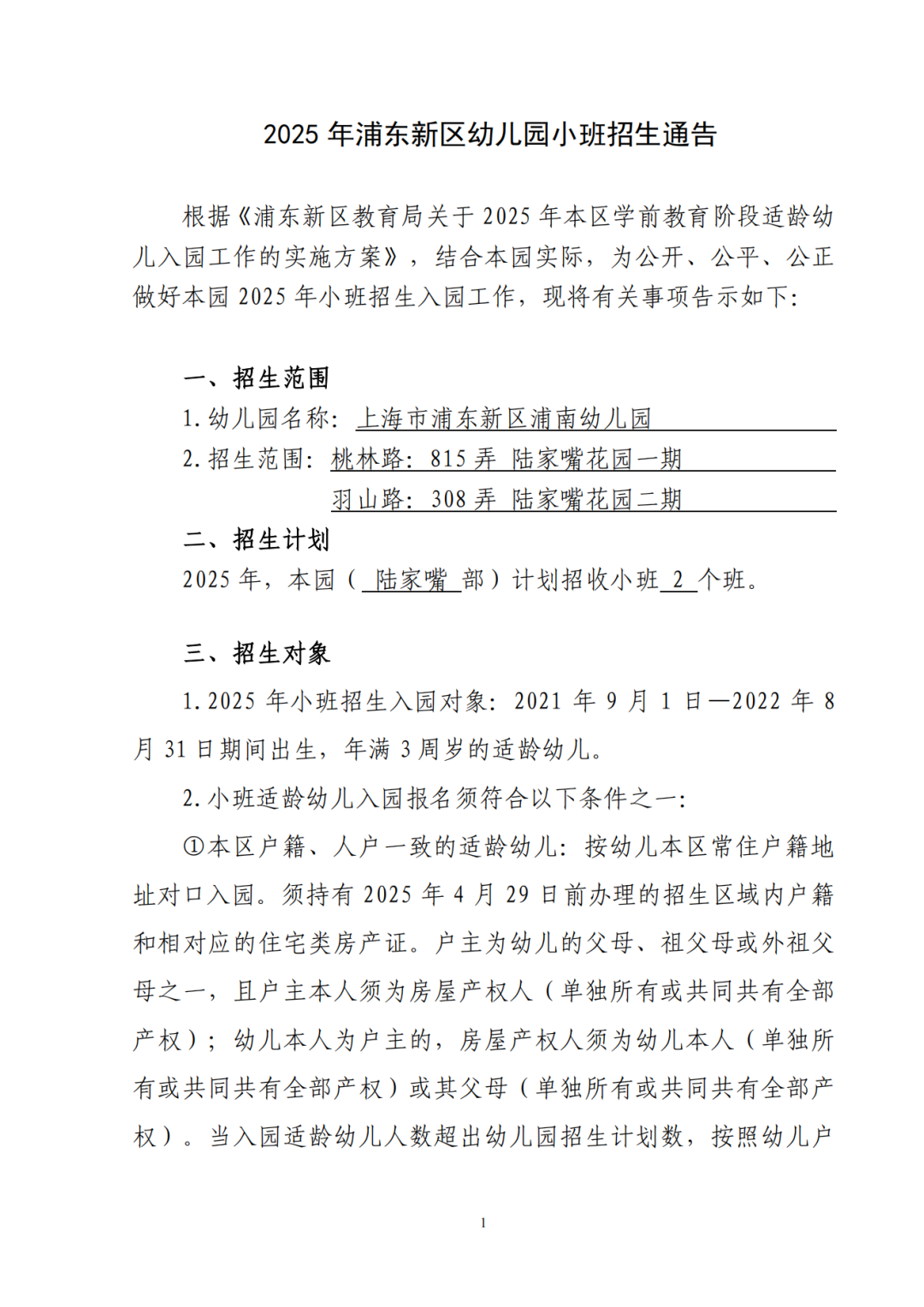 根据《浦东新区教育局关于2023年本区学前教育阶段适龄幼儿入园工作的实施方案》,结合本园实际,为公开、公平、公正做好本园2023年小班招生入园工作,现将有关事项告示如下: